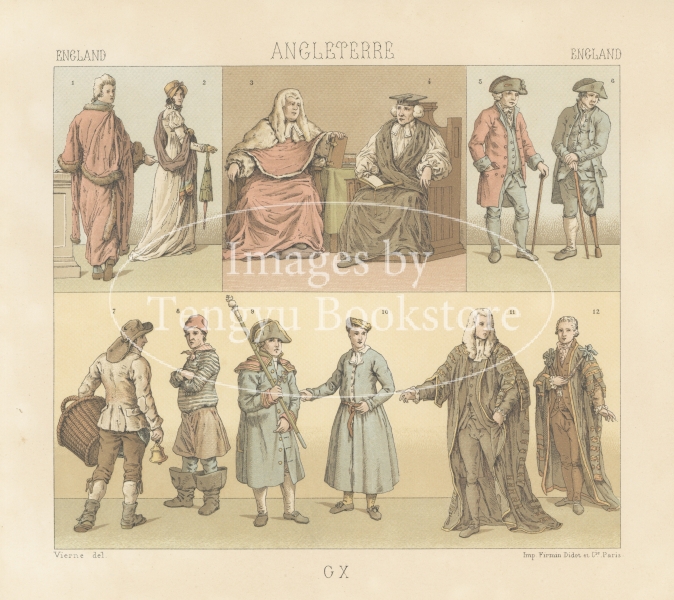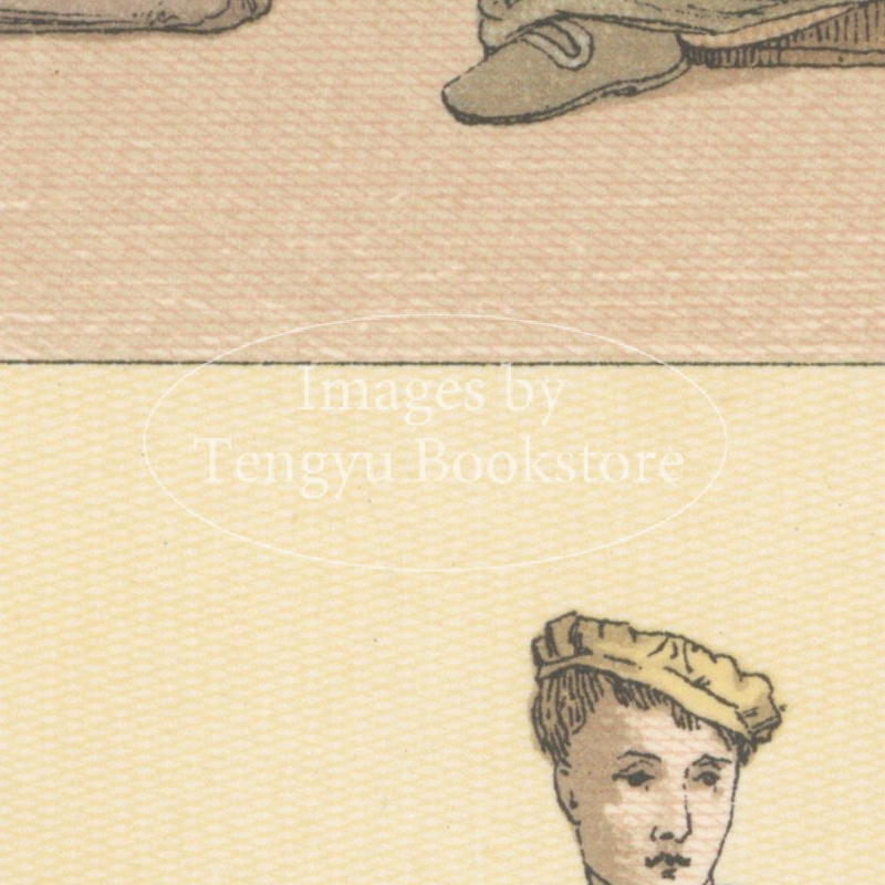 多色刷石版によってカラー印刷された、世界の歴史的衣装や民族衣装の図は、資料的な価値はもちろん、美術的にも評価の高い貴重なイラストです。