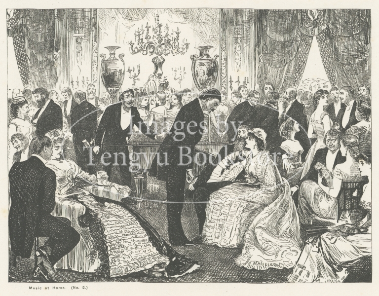 風刺雑誌パンチで多くの作品を発表したデュ・モーリアが得意とした、ヴィクトリア朝期イギリスにおける中産階級の社交生活を描いたもの。