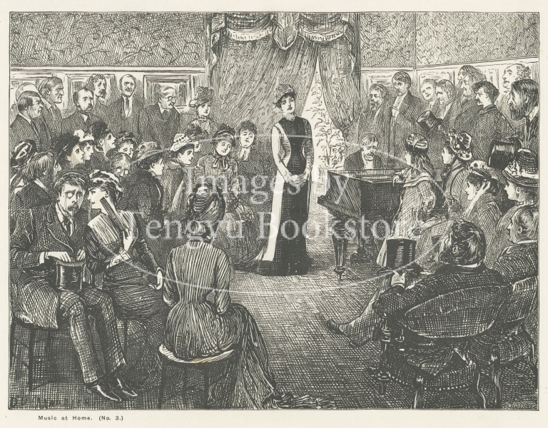 風刺雑誌パンチで多くの作品を発表したデュ・モーリアが得意とした、ヴィクトリア朝期イギリスにおける中産階級の社交生活を描いたもの。