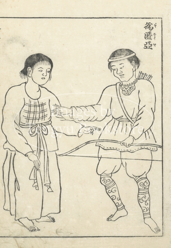 江戸時代中期の天文・地理学者 西川如見(にしかわ じょけん:1648-1724)による世界の民族図誌「万国人物図説」(四十二国人物図説)収録の挿絵。
