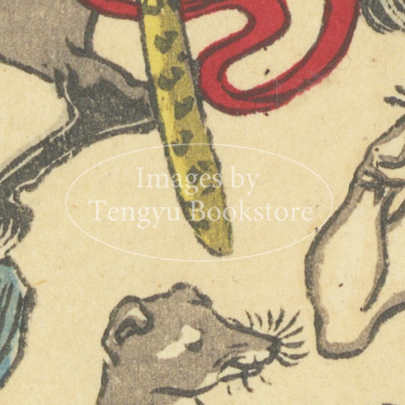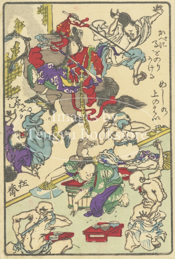 優れた筆力と流派に留まらない独自の画風で海外でも人気の高い幕末-明治期の絵師、河鍋暁斎(1831-1889)の戯画集「狂斎百図」の一図。