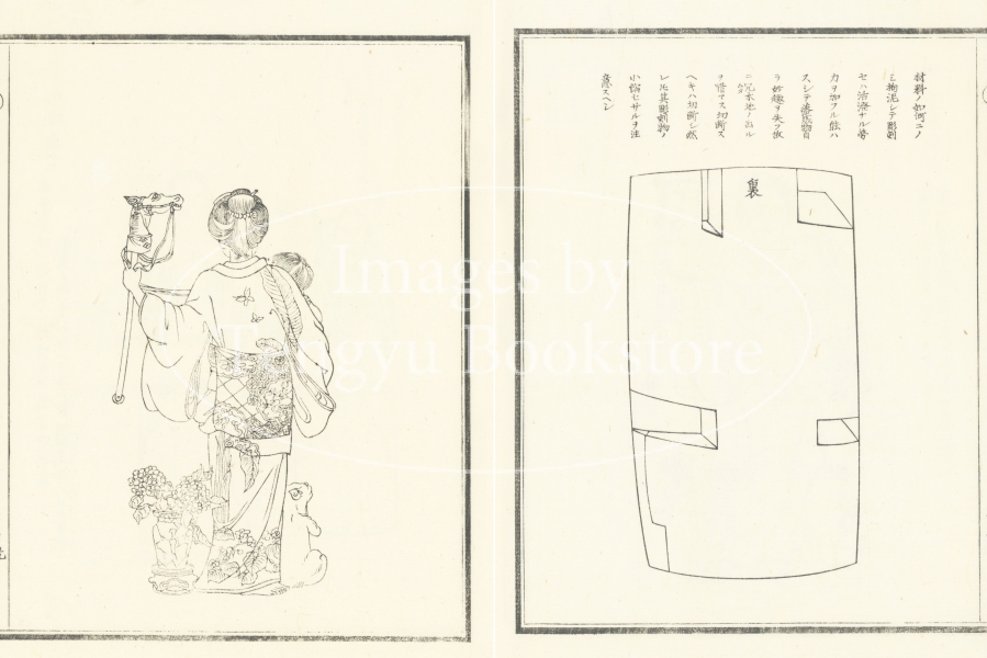 本来は2枚に分けて描かれた作品であるため、色味や図案の整合に若干の不統一があることをご了承ください。