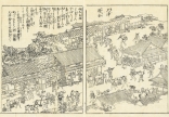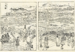 大阪の浮世絵師、蔀関月(しとみ かんげつ:1747-1797)が挿絵を手がけた本書は、京都の三条大橋から伊勢神宮までの道のりを中心に描いたもの。