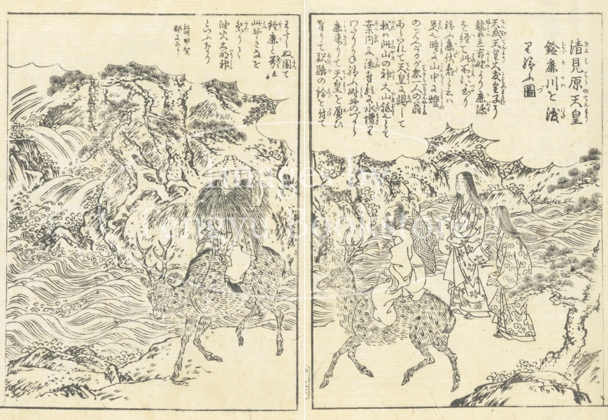 大阪の浮世絵師、蔀関月(しとみ かんげつ:1747-1797)が挿絵を手がけた本書は、京都の三条大橋から伊勢神宮までの道のりを中心に描いたもの。