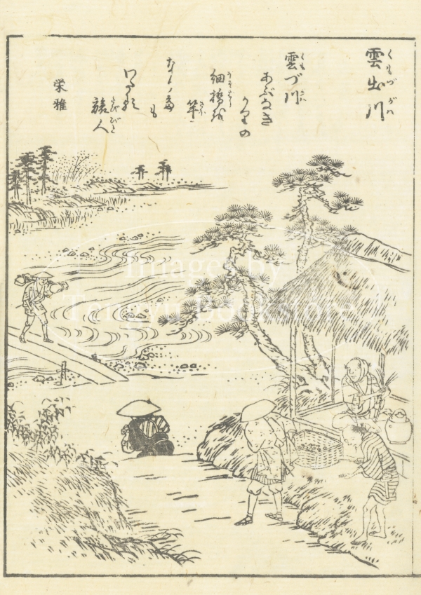 大阪の浮世絵師、蔀関月(しとみ かんげつ:1747-1797)が挿絵を手がけた本書は、京都の三条大橋から伊勢神宮までの道のりを中心に描いたもの。