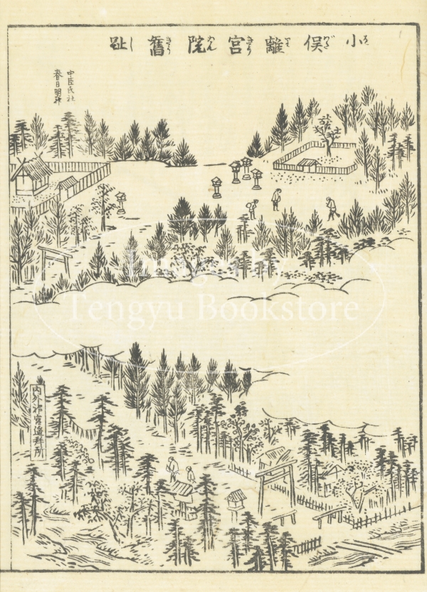 大阪の浮世絵師、蔀関月(しとみ かんげつ:1747-1797)が挿絵を手がけた本書は、京都の三条大橋から伊勢神宮までの道のりを中心に描いたもの。