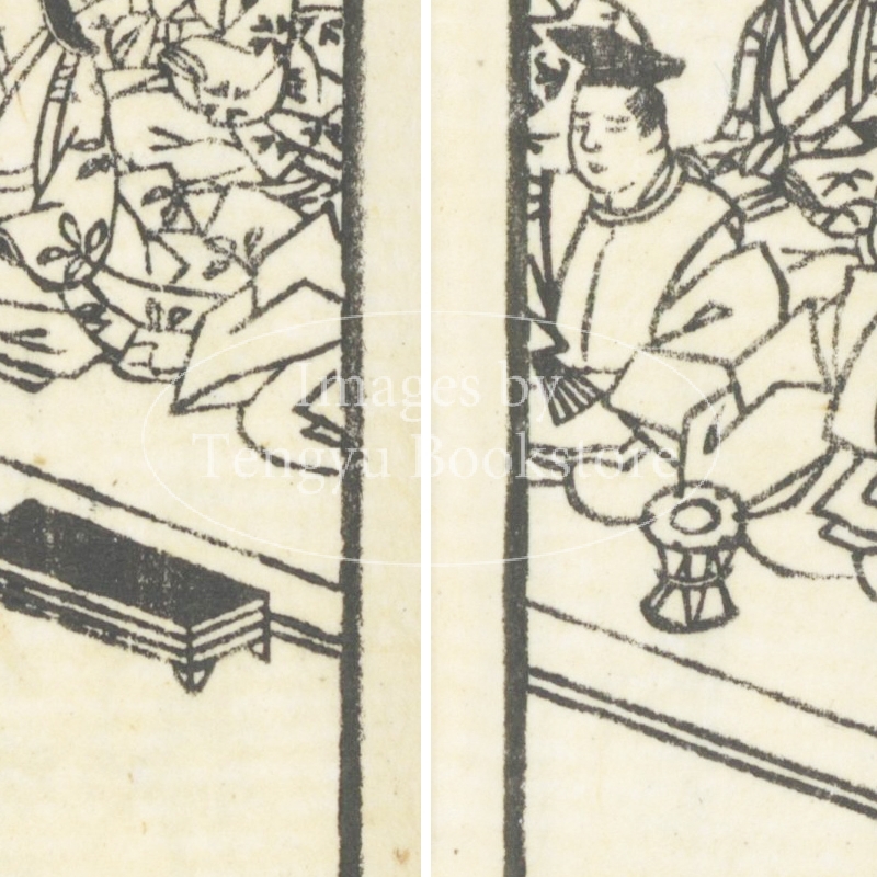 本来は2枚に分けて描かれた作品であるため、色味や図案の整合に若干の不統一があることをご了承ください。