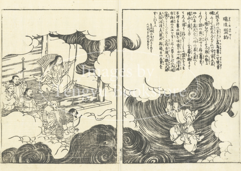 大阪の浮世絵師、蔀関月(しとみ かんげつ:1747-1797)が挿絵を手がけた本書は、京都の三条大橋から伊勢神宮までの道のりを中心に描いたもの。