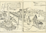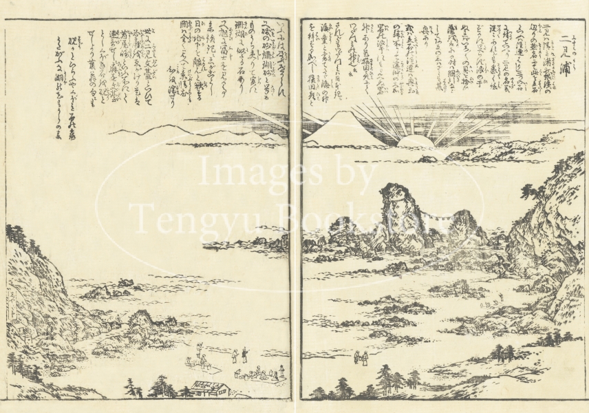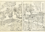 大阪の浮世絵師、蔀関月(しとみ かんげつ:1747-1797)が挿絵を手がけた本書は、京都の三条大橋から伊勢神宮までの道のりを中心に描いたもの。