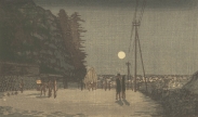 小林清親に師事し、短命の作家ながらも明治初期に活躍した井上安治の木版画集の中の1枚です。