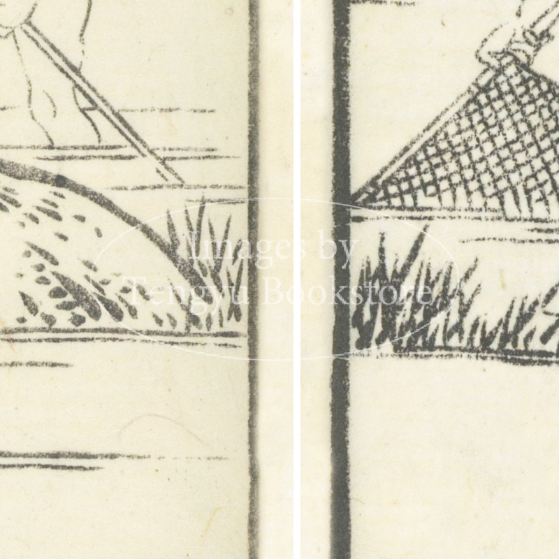 本来は2枚に分けて描かれた作品であるため、色味や図案の整合に若干の不統一があることをご了承ください。