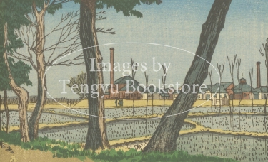 小林清親に師事し、短命の作家ながらも明治初期に活躍した井上安治の木版画集の中の1枚です。