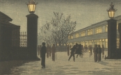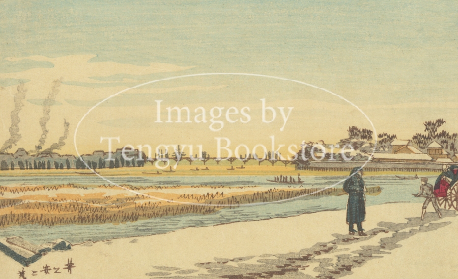 小林清親に師事し、短命の作家ながらも明治初期に活躍した井上安治の木版画集の中の1枚です。