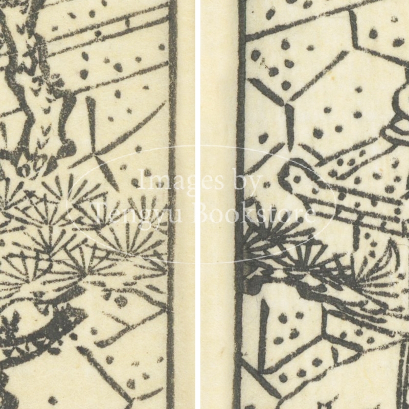 本来は2枚に分けて描かれた作品であるため、色味や図案の整合に若干の不統一があることをご了承ください。
