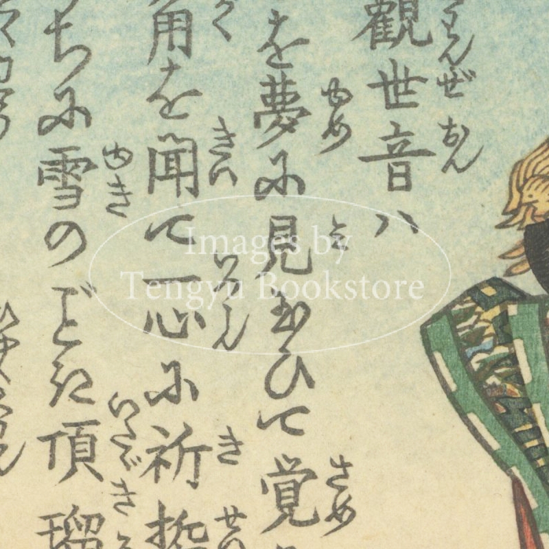 日本各地の観音霊場を、国貞による当地の故事逸話の場面と、二代目広重による風景画で紹介したもの。