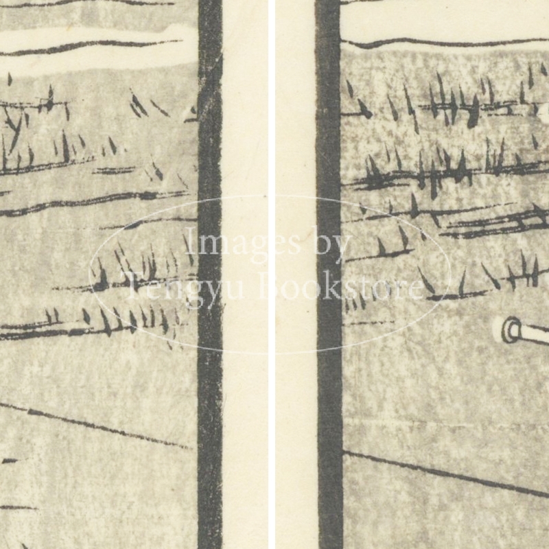 本来は2枚に分けて描かれた作品であるため、色味や図案の整合に若干の不統一があることをご了承ください。