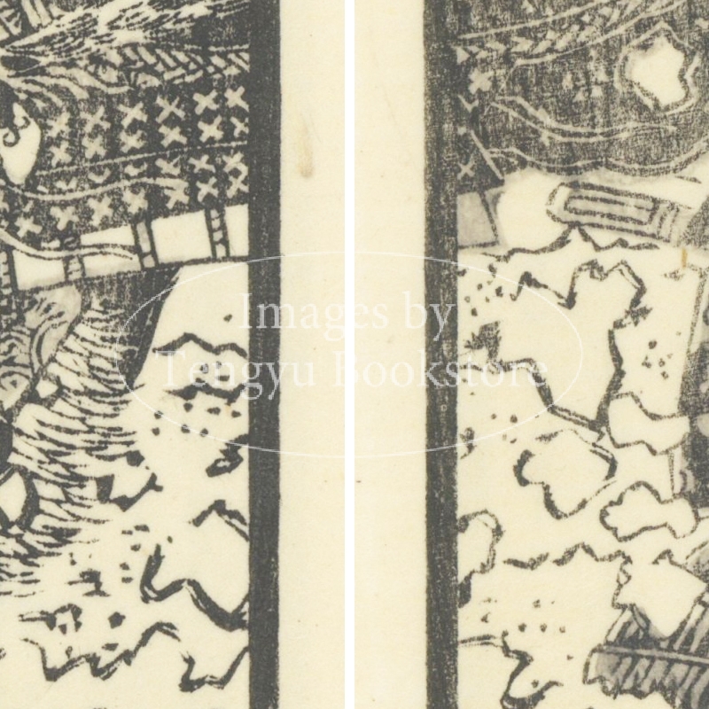 本来は2枚に分けて描かれた作品であるため、色味や図案の整合に若干の不統一があることをご了承ください。