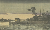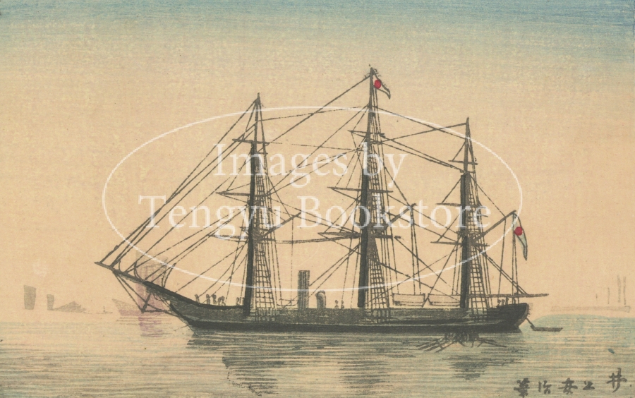 小林清親に師事し、短命の作家ながらも明治初期に活躍した井上安治の木版画集の中の1枚です。