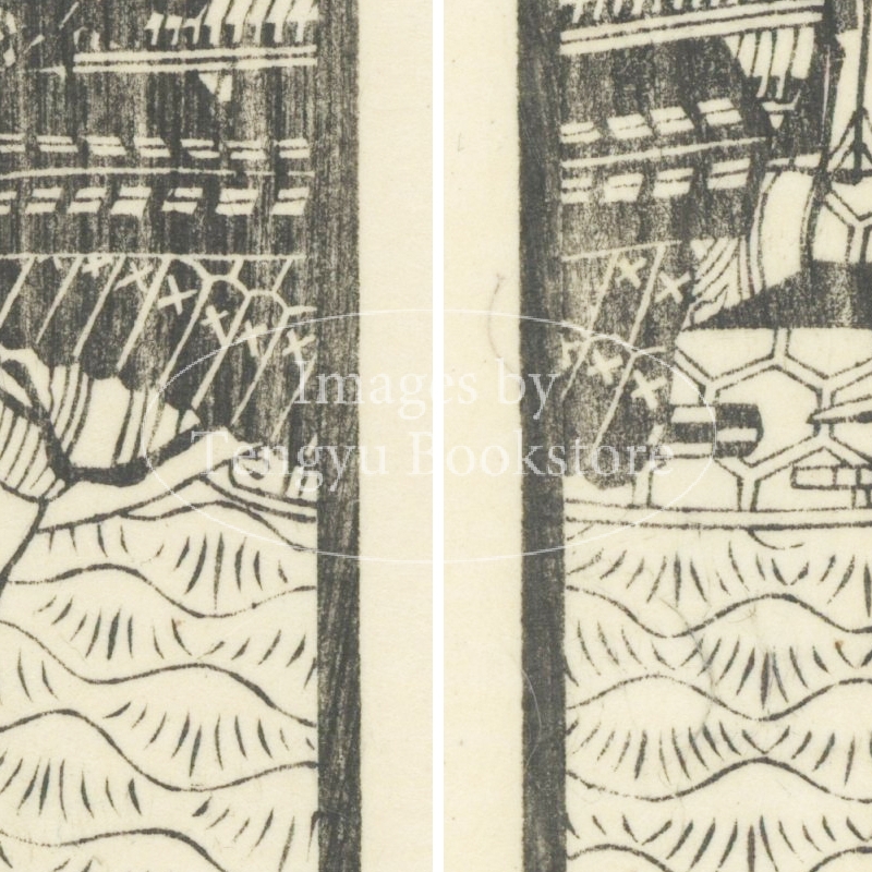 本来は2枚に分けて描かれた作品であるため、色味や図案の整合に若干の不統一があることをご了承ください。