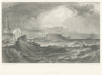 19世紀イギリスを代表する画家J.M.W.ターナーの版画作品集「ターナー・ギャラリー」中の1枚。油彩をはじめ、水彩や、挿絵版画等を手掛けた風景画の巨匠ターナーの死後に刊行された本書は、鋼版画に起こしたターナー作品を120点収録した、19世紀版画挿絵本の名品です。