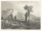 19世紀イギリスを代表する画家J.M.W.ターナーの版画作品集「ターナー・ギャラリー」中の1枚。油彩をはじめ、水彩や、挿絵版画等を手掛けた風景画の巨匠ターナーの死後に刊行された本書は、鋼版画に起こしたターナー作品を120点収録した、19世紀版画挿絵本の名品です。