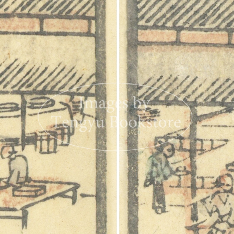 本来は2枚に分けて描かれた作品であるため、色味や図案の整合に若干の不統一があることをご了承ください。