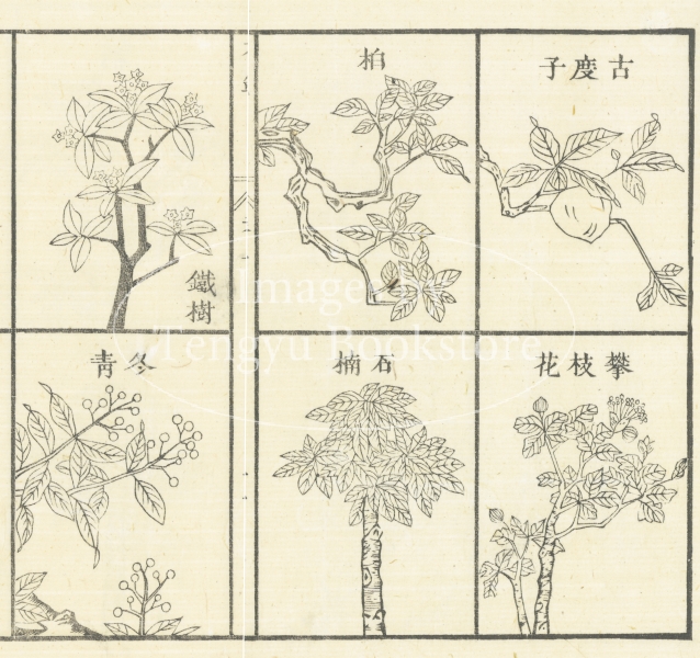 中国最初の園芸指南書と言われる「秘伝花鏡」の挿絵(和刻本・江戸後期刊)。