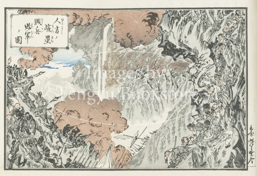 幕末・明治の浮世絵師 河鍋暁斎(1831-1889)が、明治10年(1877)に勃発した西郷隆盛を中心とする九州士族と明治政府との戦い「西南戦争」を題材に描いた木版画。