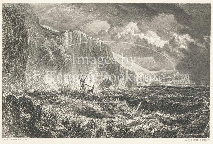 19世紀イギリスを代表する画家J.M.W.ターナーの版画作品集「ターナー・ギャラリー」中の1枚。油彩をはじめ、水彩や、挿絵版画等を手掛けた風景画の巨匠ターナーの死後に刊行された本書は、鋼版画に起こしたターナー作品を120点収録した、19世紀版画挿絵本の名品です。