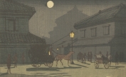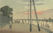 光線画と呼ばれる、西洋の写実的な風景の捉え方を取り入れた新しい浮世絵の画風で情緒豊かに明治の東京の風景が描写されています。
