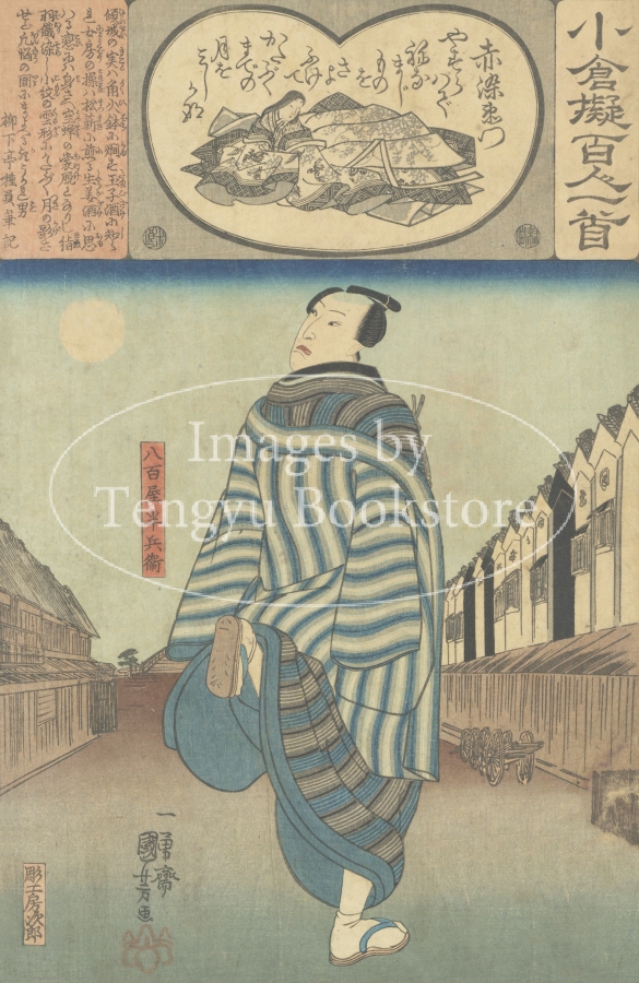 江戸時代に刊行された浮世絵連作「小倉擬百人一首(おぐらなぞらえひゃくにんいっしゅ)」からの一枚。