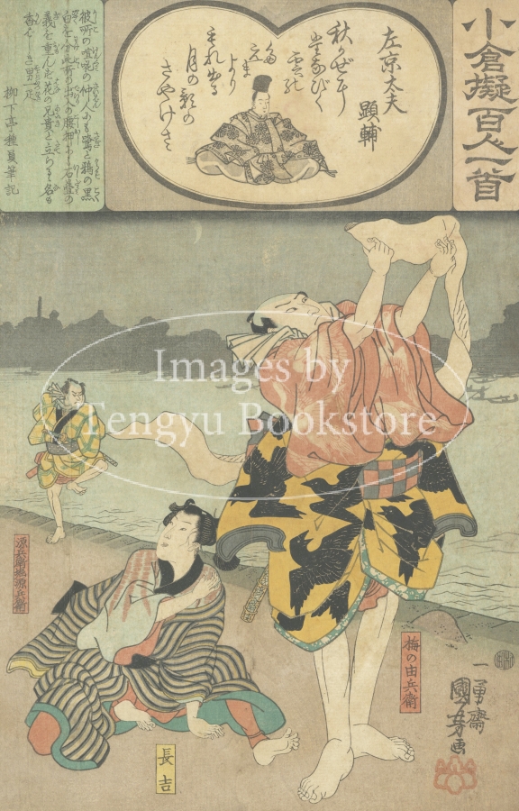 江戸時代に刊行された浮世絵連作「小倉擬百人一首(おぐらなぞらえひゃくにんいっしゅ)」からの一枚。