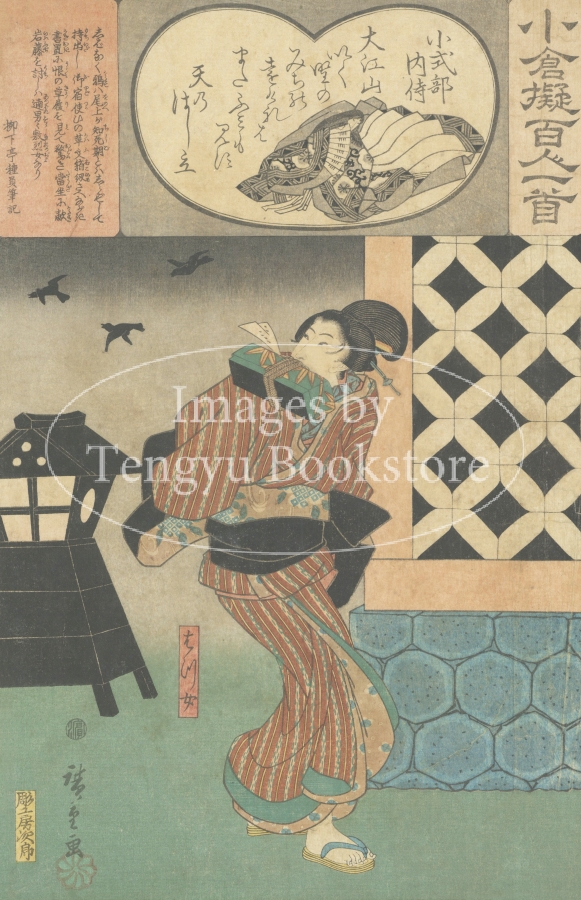 江戸時代に刊行された浮世絵連作「小倉擬百人一首(おぐらなぞらえひゃくにんいっしゅ)」からの一枚。
