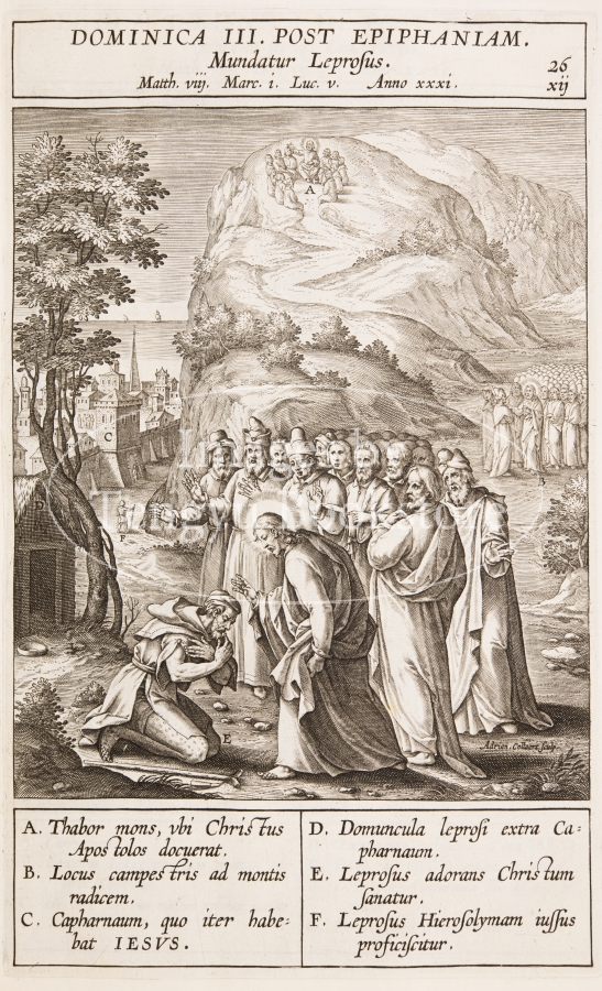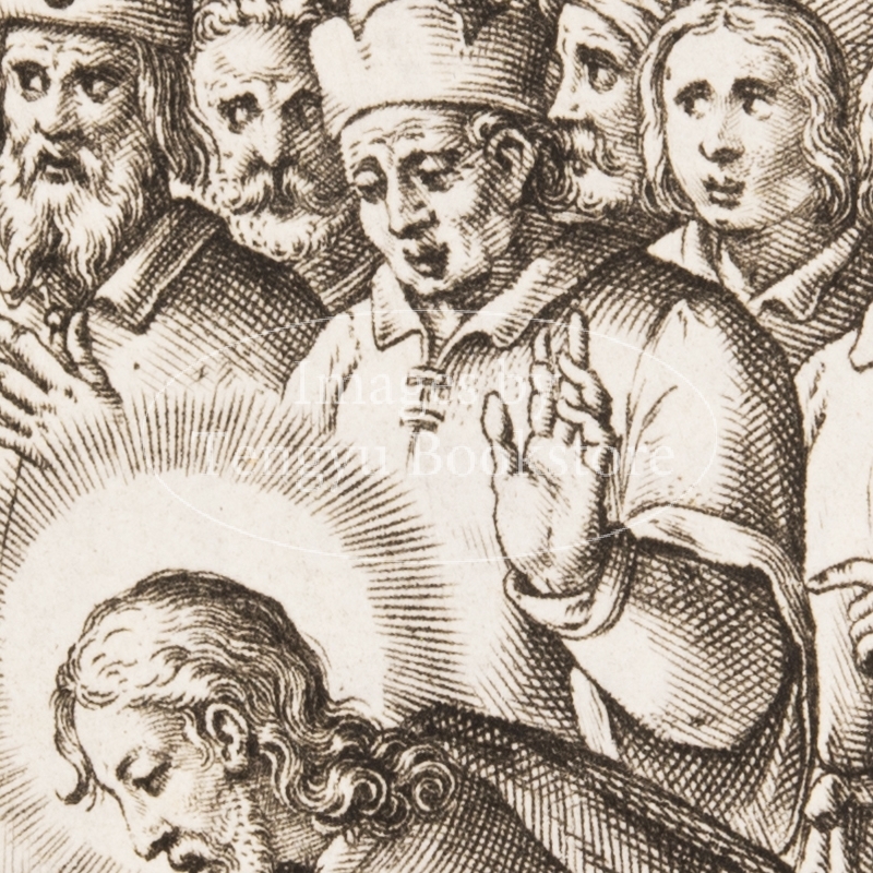 イエス・キリストの生涯の記録である福音書に、スペインの宣教師ヘロニモ・ナダル(1507-1580)が註釈をほどこし、153点におよぶ銅版画によって図解した本書は、信者の信仰心をより深め布教にも役立つ視覚に訴える聖書として作られたもの。