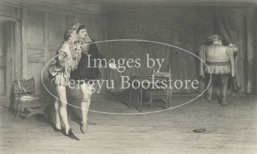 イギリスを代表する劇作家ウィリアム・シェイクスピア(1564-1616)の19世紀刊行版2巻本全集収録の戯曲「ヘンリー四世」の挿絵。
