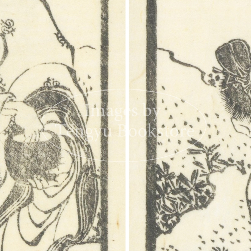 明代中国で編纂された唐代中国詩の選集「唐詩選」に、江戸時代後期の文学者 高井蘭山による解説と北斎ほか当時の絵師たちが挿絵を加えた挿絵本「唐詩選画本(とうしせんえほん)」中の挿絵。