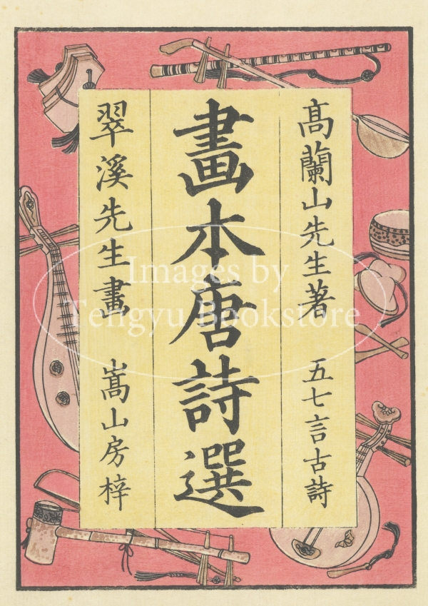 明代中国で編纂された唐代中国詩の選集「唐詩選」に、江戸時代後期の文学者 高井蘭山による解説と北斎ほか当時の絵師たちが挿絵を加えた挿絵本「唐詩選画本(とうしせんえほん)」の袋。