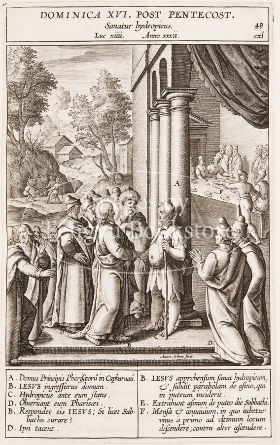 イエス・キリストの生涯の記録である福音書に、スペインの宣教師ヘロニモ・ナダル(1507-1580)が註釈をほどこし、153点におよぶ銅版画によって図解した本書は、信者の信仰心をより深め布教にも役立つ視覚に訴える聖書として作られたもの。