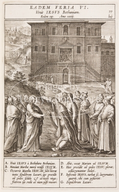 イエス・キリストの生涯の記録である福音書に、スペインの宣教師ヘロニモ・ナダル(1507-1580)が註釈をほどこし、153点におよぶ銅版画によって図解した本書は、信者の信仰心をより深め布教にも役立つ視覚に訴える聖書として作られたもの。