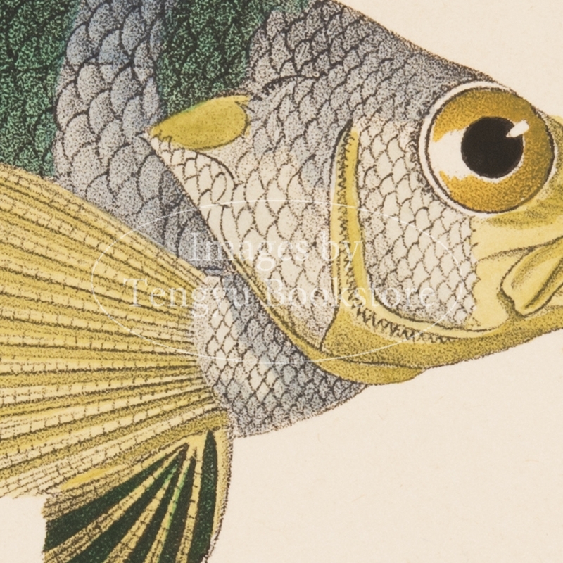 1836年に刊行された本書は、97点もの美しい手彩色石版図版を用いて、世界の魚類を広く紹介したもの。