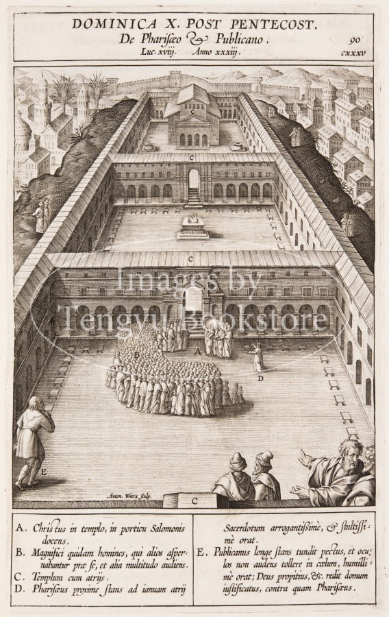 イエス・キリストの生涯の記録である福音書に、スペインの宣教師ヘロニモ・ナダル(1507-1580)が註釈をほどこし、153点におよぶ銅版画によって図解した本書は、信者の信仰心をより深め布教にも役立つ視覚に訴える聖書として作られたもの。