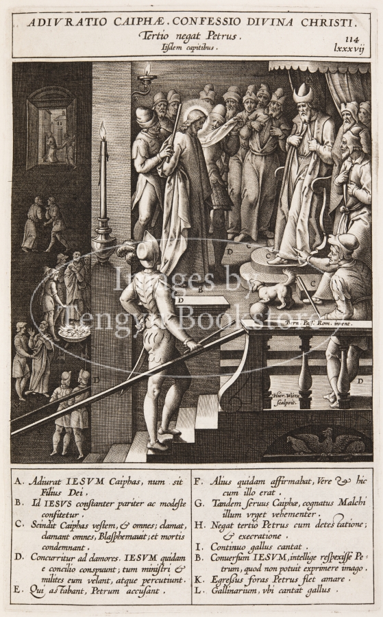 イエス・キリストの生涯の記録である福音書に、スペインの宣教師ヘロニモ・ナダル(1507-1580)が註釈をほどこし、153点におよぶ銅版画によって図解した本書は、信者の信仰心をより深め布教にも役立つ視覚に訴える聖書として作られたもの。