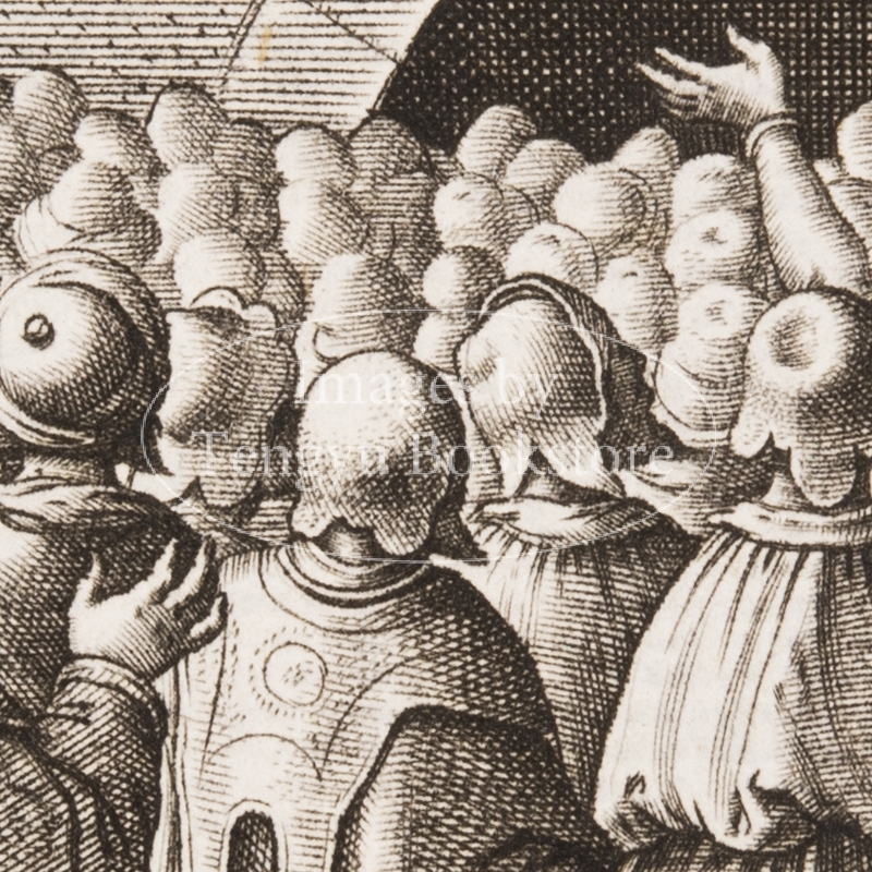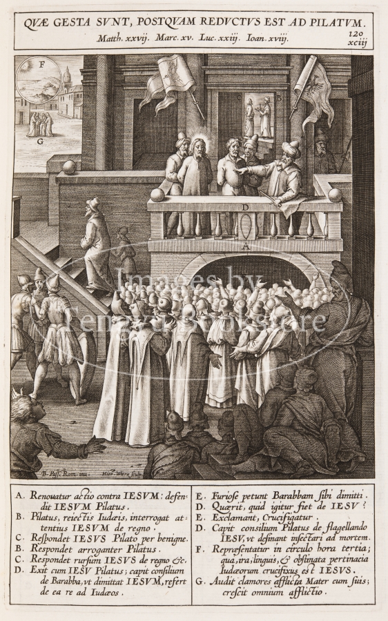 イエス・キリストの生涯の記録である福音書に、スペインの宣教師ヘロニモ・ナダル(1507-1580)が註釈をほどこし、153点におよぶ銅版画によって図解した本書は、信者の信仰心をより深め布教にも役立つ視覚に訴える聖書として作られたもの。