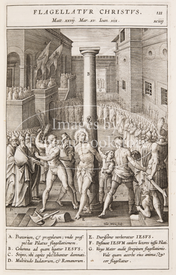 イエス・キリストの生涯の記録である福音書に、スペインの宣教師ヘロニモ・ナダル(1507-1580)が註釈をほどこし、153点におよぶ銅版画によって図解した本書は、信者の信仰心をより深め布教にも役立つ視覚に訴える聖書として作られたもの。
