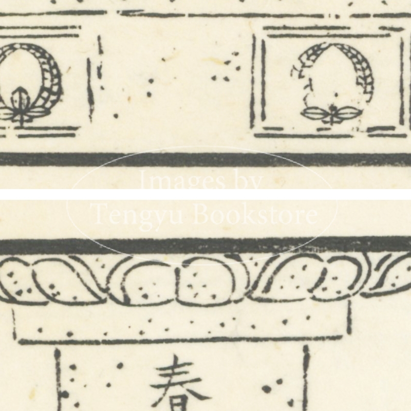 本来は2枚に分けて描かれた作品であるため、色味や図案の整合に若干の不統一があることをご了承ください。