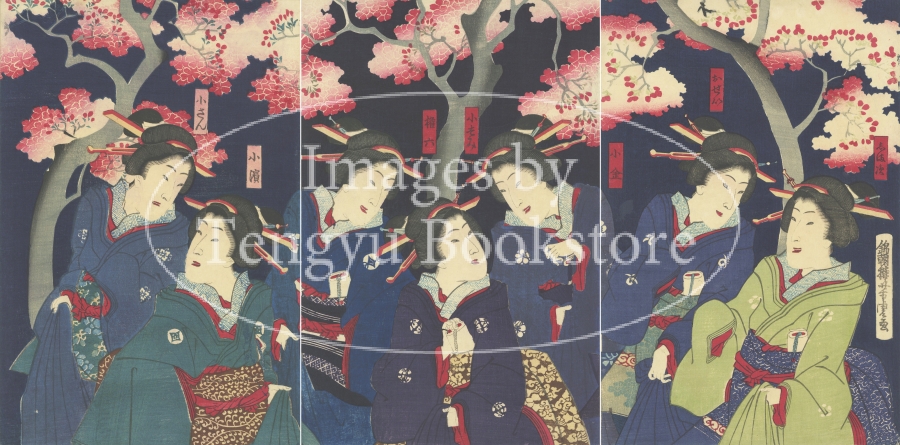 幕末・明治の浮世絵師 歌川芳虎(生没年不詳)による三枚続の美人画。