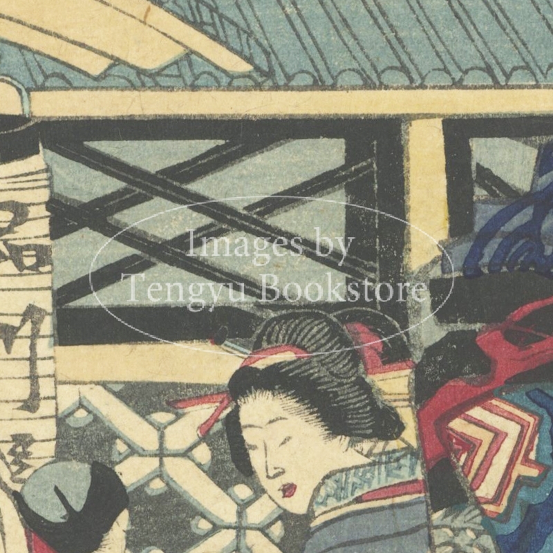 幕末・明治の浮世絵師 二代目歌川国輝(1830-1874)による三枚続の美人画。