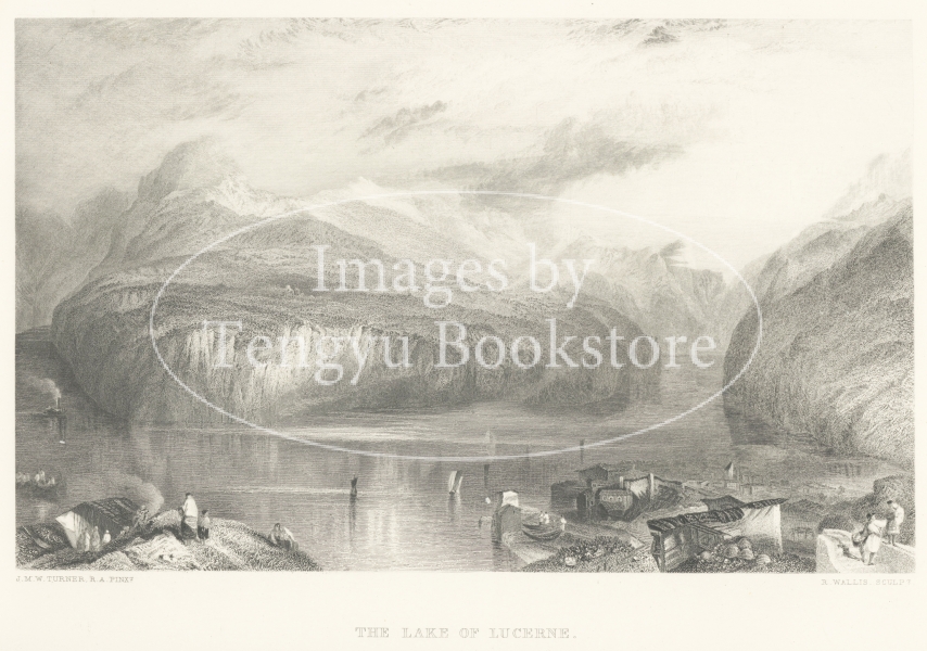 19世紀イギリスを代表する画家J.M.W.ターナーの版画作品集「ターナー・ギャラリー」中の1枚。油彩をはじめ、水彩や、挿絵版画等を手掛けた風景画の巨匠ターナーの死後に刊行された本書は、鋼版画に起こしたターナー作品を120点収録した、19世紀版画挿絵本の名品です。