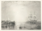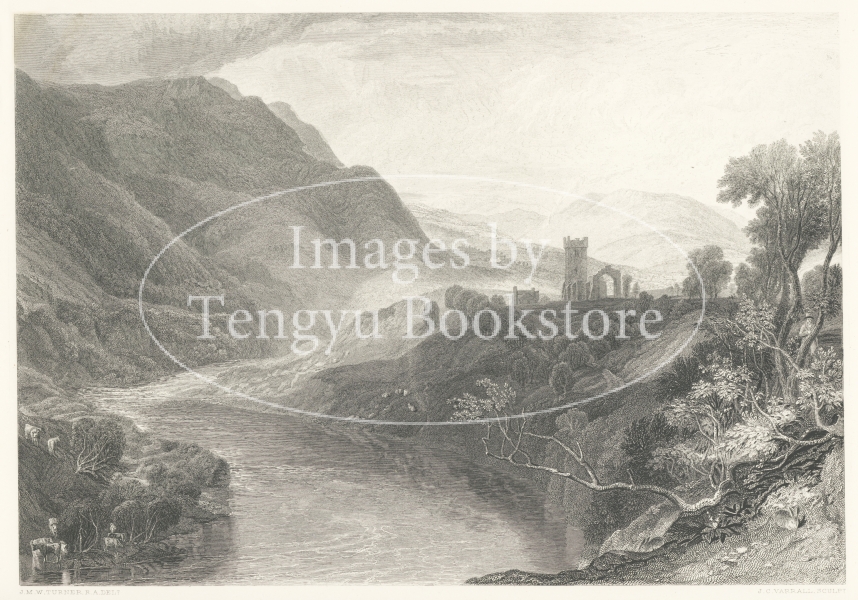 19世紀イギリスを代表する画家J.M.W.ターナーの版画作品集「ターナー・ギャラリー」中の1枚。油彩をはじめ、水彩や、挿絵版画等を手掛けた風景画の巨匠ターナーの死後に刊行された本書は、鋼版画に起こしたターナー作品を120点収録した、19世紀版画挿絵本の名品です。