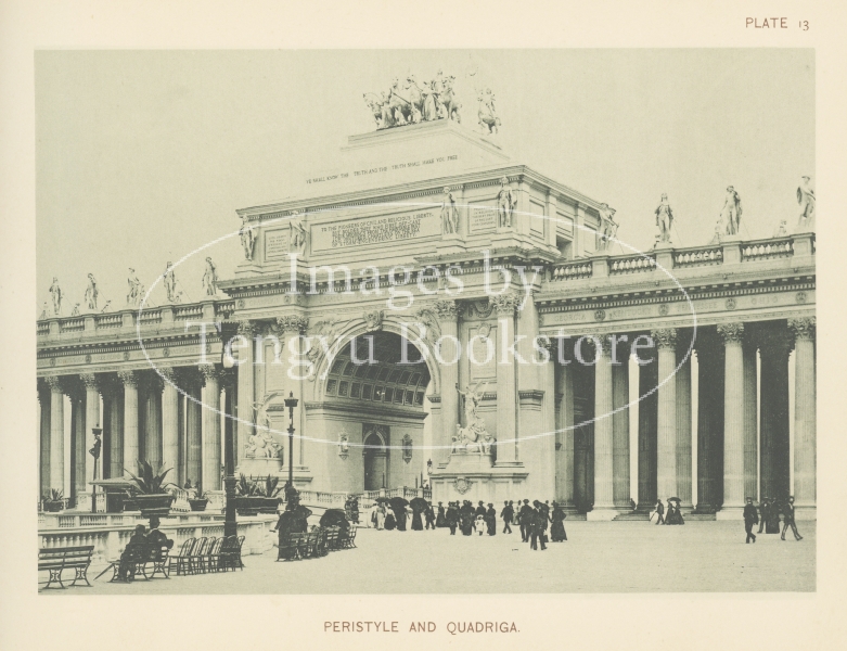 1893年にアメリカで開催されたシカゴ万博の記録写真集中の1枚。広大な敷地内に大掛かりなパビリオンを多数建設し、19世紀末アメリカの科学技術や文化の先進性を世界に知らしめたシカゴ万博は、19世紀中に3度アメリカで行われた万博中、最大規模のもの。